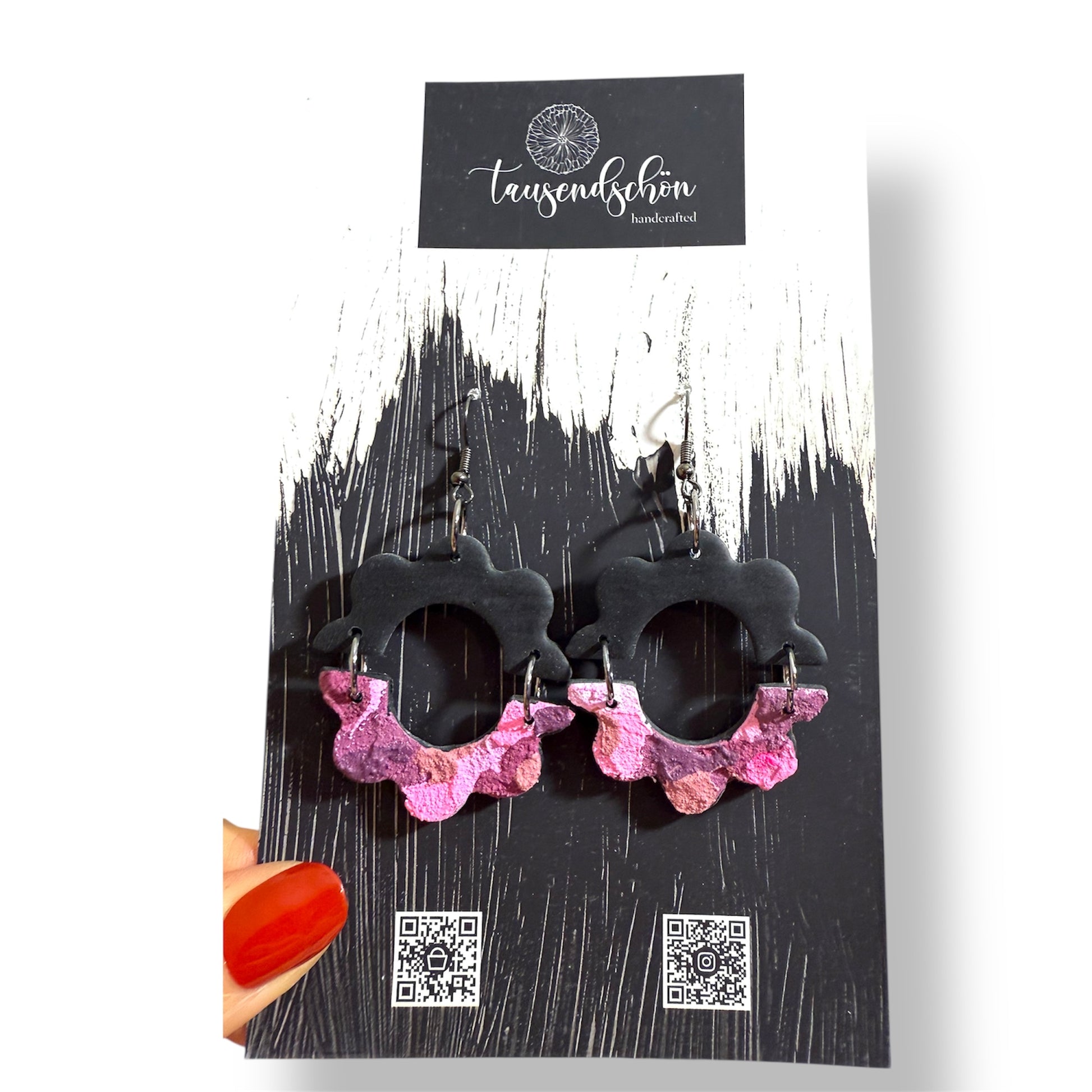 Unsere schöne Ohrringe werden aus einem ungiftigen PVC-basierten Medium namens Polymer Clay hergestellt. Wir formen es, mischen die Farben und fügen manchmal Dinge wie Folie oder Glitter hinzu, dann werden sie mit größter Sorgfalt ausgehärtet und fertiggestellt.