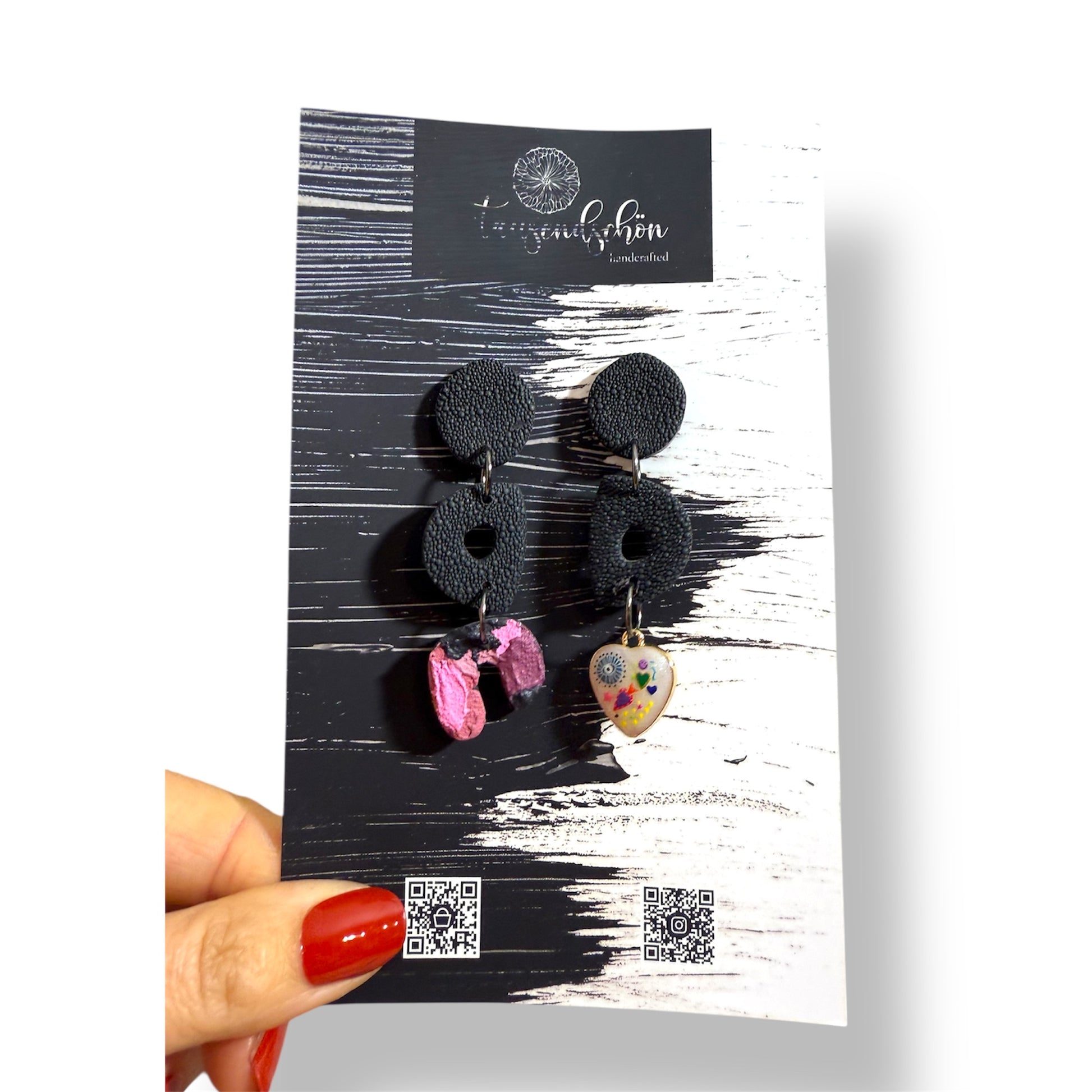Unsere schöne Ohrringe werden aus einem ungiftigen PVC-basierten Medium namens Polymer Clay hergestellt. Wir formen es, mischen die Farben und fügen manchmal Dinge wie Folie oder Glitter hinzu, dann werden sie mit größter Sorgfalt ausgehärtet und fertiggestellt.