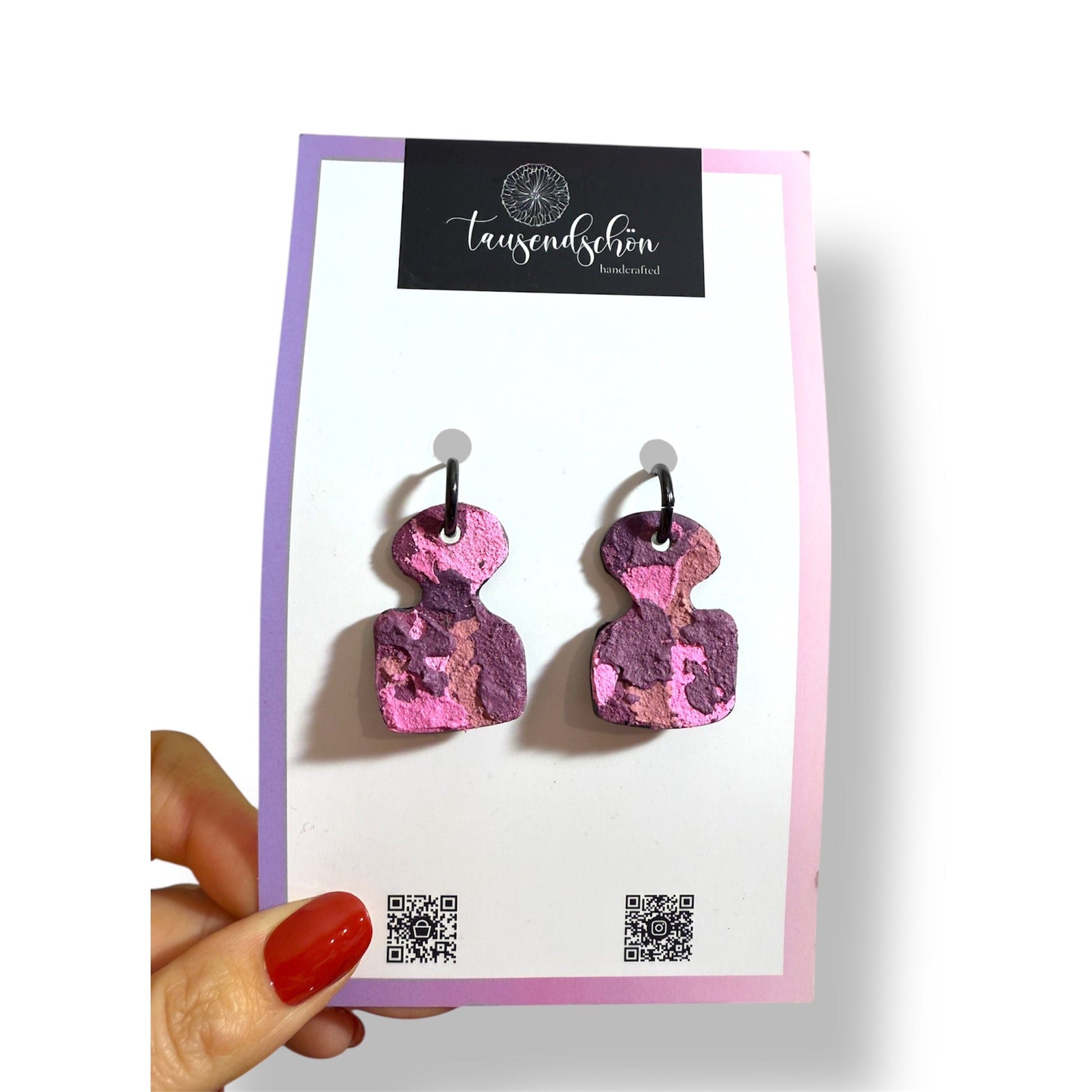 Obwohl Polymer Clay haltbar und stark ist, muss er dennoch richtig gepflegt werden, da er bei unsachgemäßer Verwendung und Lagerung leicht zerbrechen kann, besonders wenn das Design empfindlich ist. Versucht bitte keine „Haltbarkeits- oder Biegetests". Am besten bewahren Sie Ihre Edelsteine „gesund und munter“ auf, indem Sie sie an einem trockenen, kühlen Ort aufbewahren.Wenn nicht anders angegeben, verwenden wir für unsere Ohrringe ausschließlich hochwertige Verschlüsse aus Edelstahl und sind Nickelfrei.