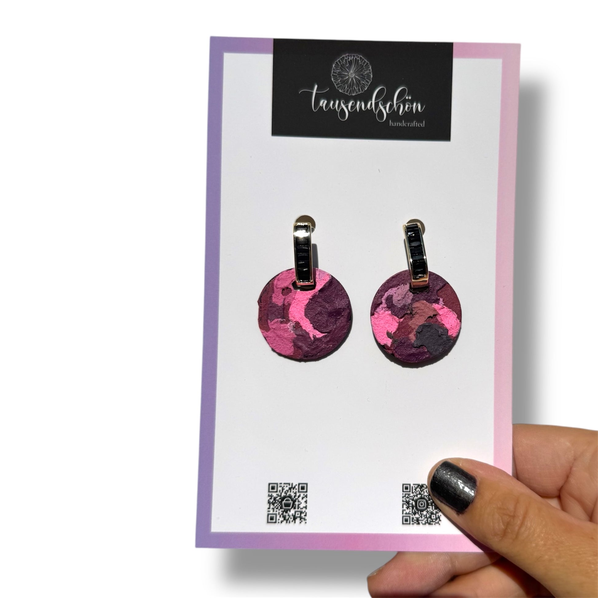 Unsere schöne Ohrringe werden aus einem ungiftigen PVC-basierten Medium namens Polymer Clay hergestellt. Wir formen es, mischen die Farben und fügen manchmal Dinge wie Folie oder Glitter hinzu, dann werden sie mit größter Sorgfalt ausgehärtet und fertiggestellt.