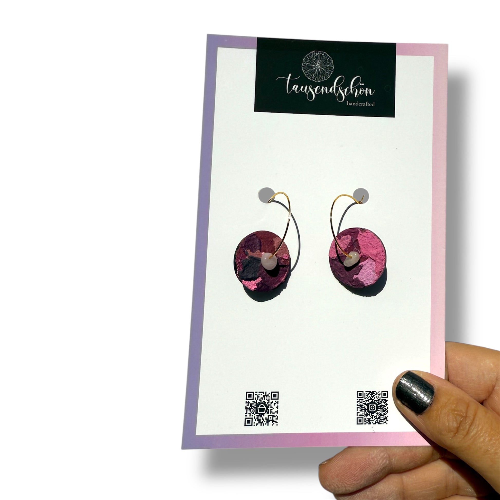 Unsere schöne Ohrringe werden aus einem ungiftigen PVC-basierten Medium namens Polymer Clay hergestellt. Wir formen es, mischen die Farben und fügen manchmal Dinge wie Folie oder Glitter hinzu, dann werden sie mit größter Sorgfalt ausgehärtet und fertiggestellt.