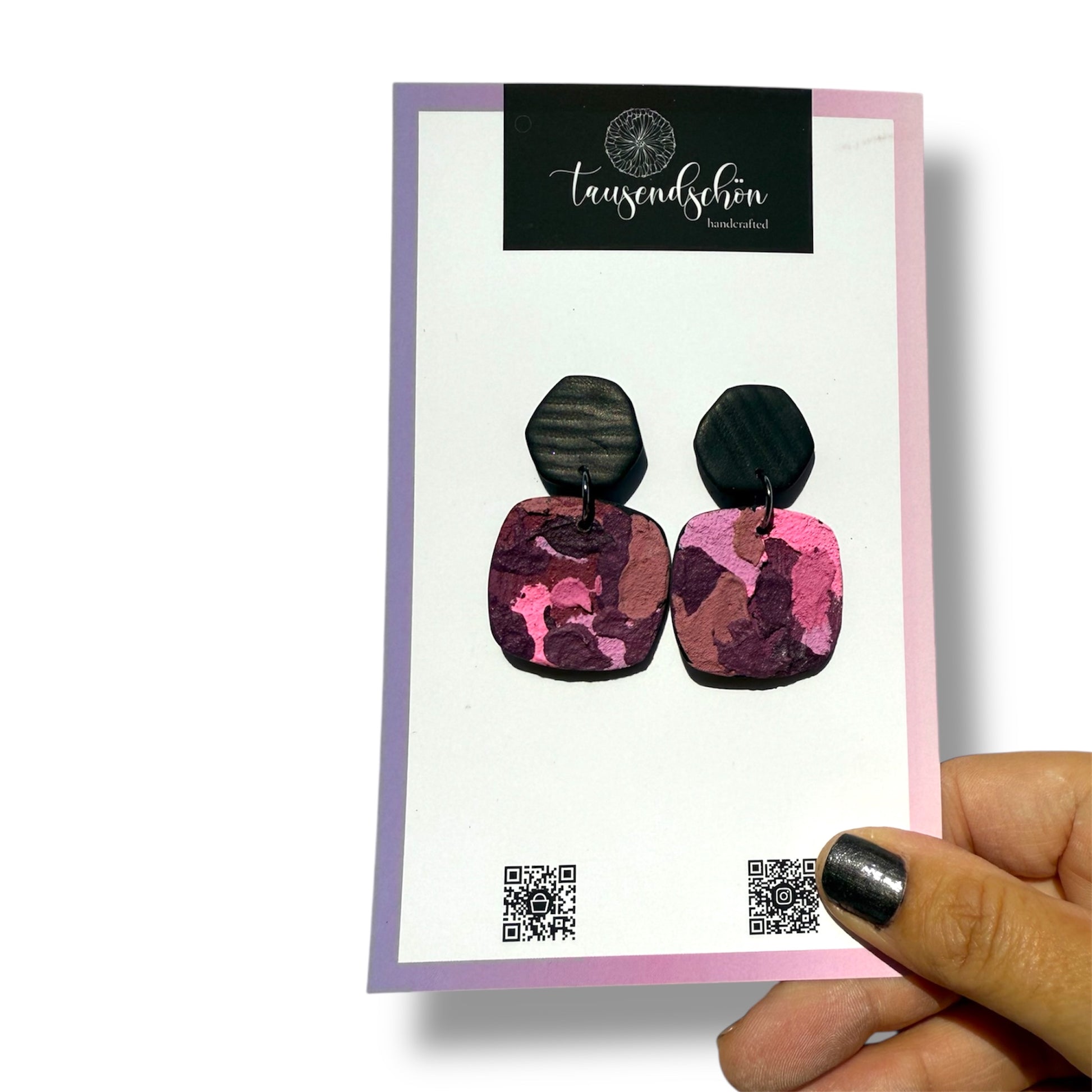 Obwohl Polymer Clay haltbar und stark ist, muss er dennoch richtig gepflegt werden, da er bei unsachgemäßer Verwendung und Lagerung leicht zerbrechen kann, besonders wenn das Design empfindlich ist. Versucht bitte keine „Haltbarkeits- oder Biegetests". Am besten bewahren Sie Ihre Edelsteine „gesund und munter“ auf, indem Sie sie an einem trockenen, kühlen Ort aufbewahren.Wenn nicht anders angegeben, verwenden wir für unsere Ohrringe ausschließlich hochwertige Verschlüsse aus Edelstahl und sind Nickelfrei.