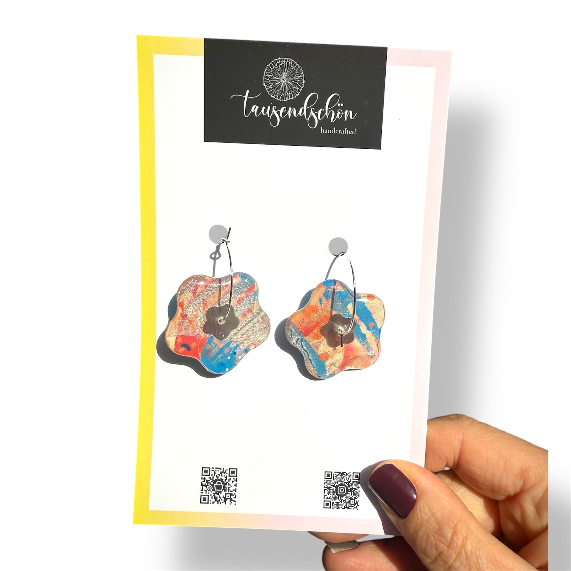 Unsere schöne Ohrringe werden aus einem ungiftigen PVC-basierten Medium namens Polymer Clay hergestellt. Wir formen es, mischen die Farben und fügen manchmal Dinge wie Folie oder Glitter hinzu, dann werden sie mit größter Sorgfalt ausgehärtet und fertiggestellt.