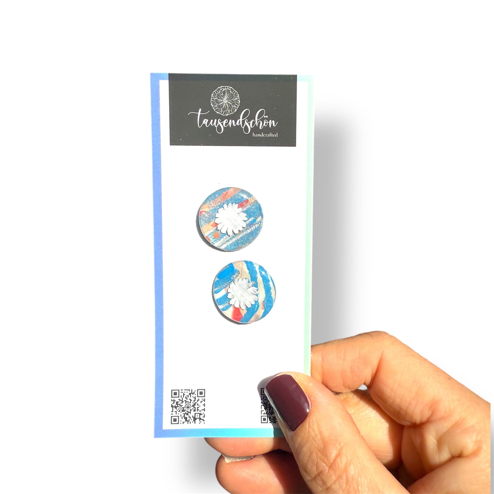 Unsere schöne Ohrringe werden aus einem ungiftigen PVC-basierten Medium namens Polymer Clay hergestellt. Wir formen es, mischen die Farben und fügen manchmal Dinge wie Folie oder Glitter hinzu, dann werden sie mit größter Sorgfalt ausgehärtet und fertiggestellt.