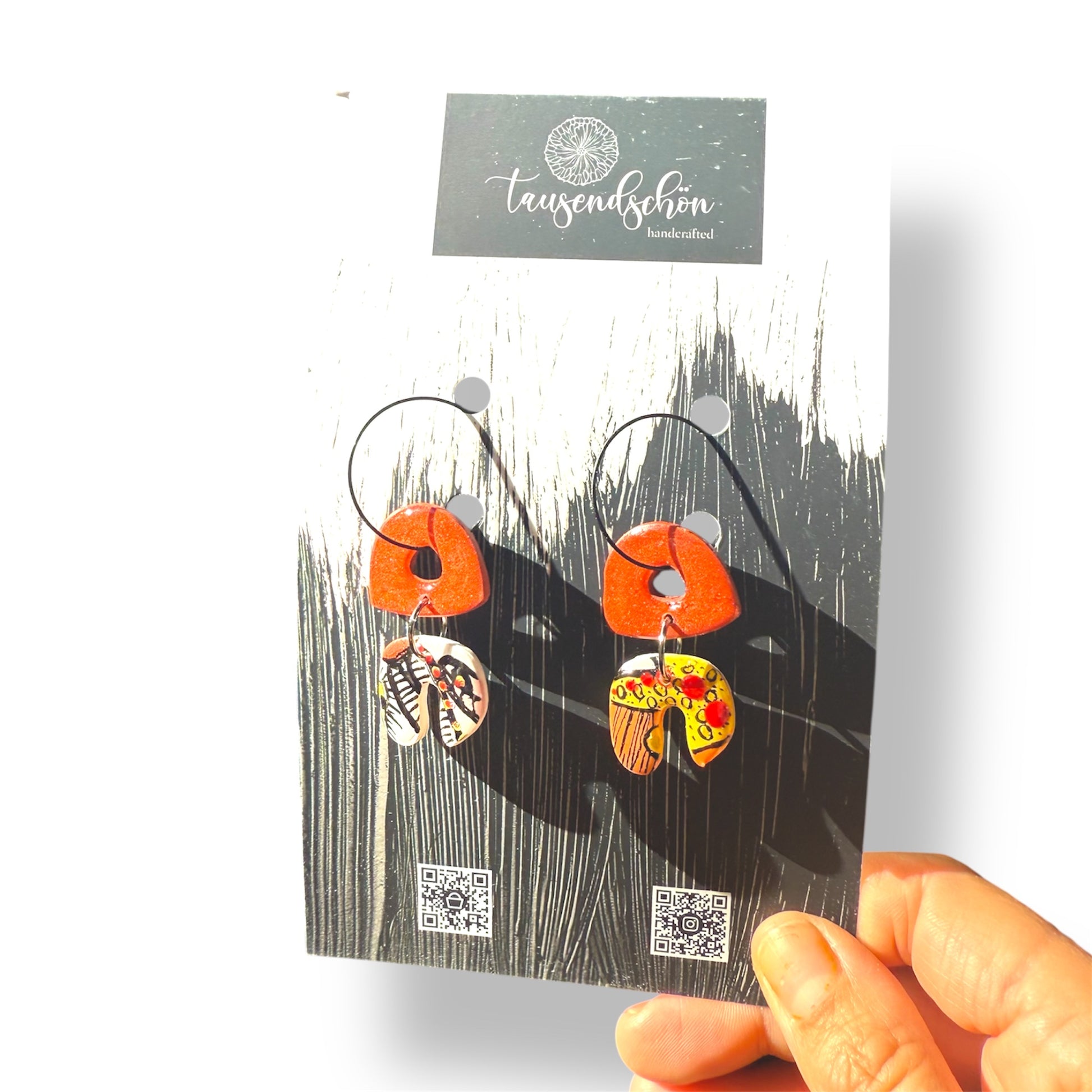 Unsere schöne Ohrringe werden aus einem ungiftigen PVC-basierten Medium namens Polymer Clay hergestellt. Wir formen es, mischen die Farben und fügen manchmal Dinge wie Folie oder Glitter hinzu, dann werden sie mit größter Sorgfalt ausgehärtet und fertiggestellt.