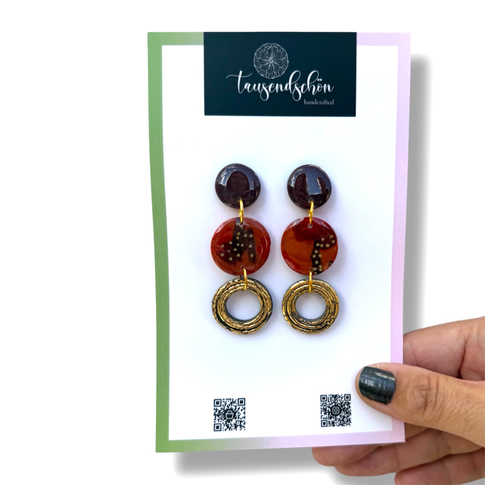 Unsere schöne Ohrringe werden aus einem ungiftigen PVC-basierten Medium namens Polymer Clay hergestellt. Wir formen es, mischen die Farben und fügen manchmal Dinge wie Folie oder Glitter hinzu, dann werden sie mit größter Sorgfalt ausgehärtet und fertiggestellt.