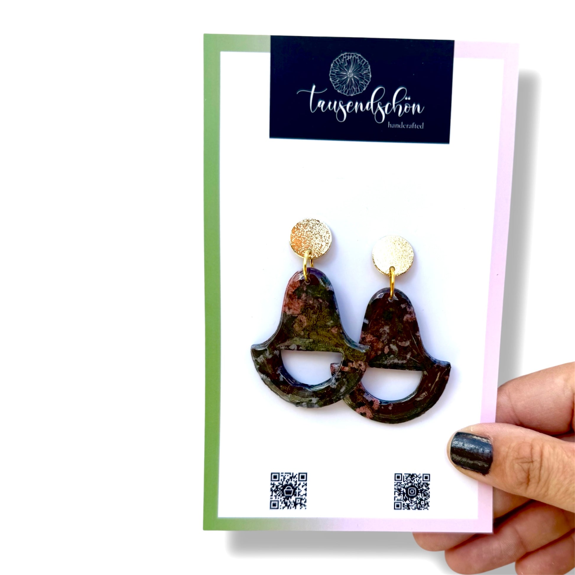 Unsere schöne Ohrringe werden aus einem ungiftigen PVC-basierten Medium namens Polymer Clay hergestellt. Wir formen es, mischen die Farben und fügen manchmal Dinge wie Folie oder Glitter hinzu, dann werden sie mit größter Sorgfalt ausgehärtet und fertiggestellt.
