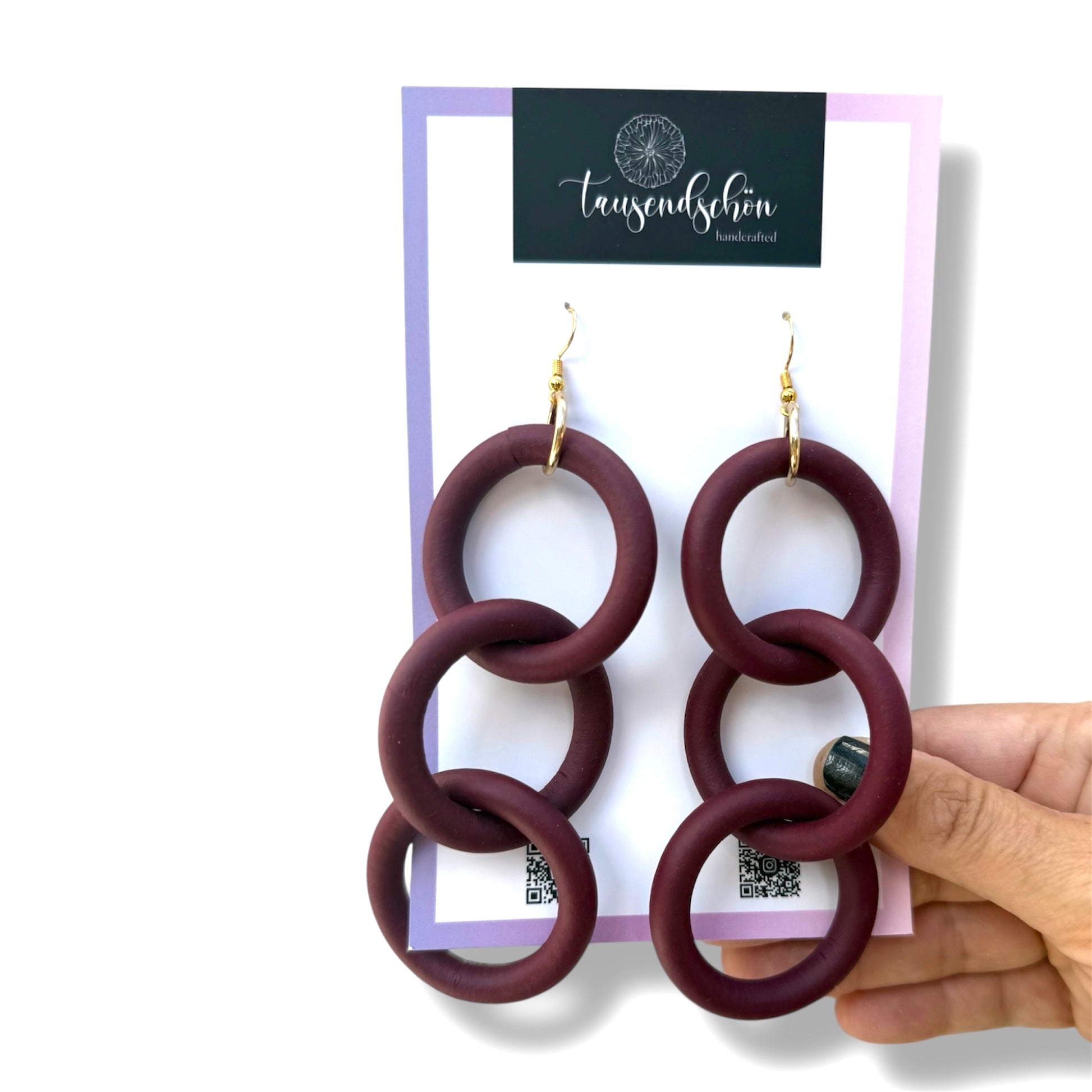 Unsere schöne Ohrringe werden aus einem ungiftigen PVC-basierten Medium namens Polymer Clay hergestellt. Wir formen es, mischen die Farben und fügen manchmal Dinge wie Folie oder Glitter hinzu, dann werden sie mit größter Sorgfalt ausgehärtet und fertiggestellt.