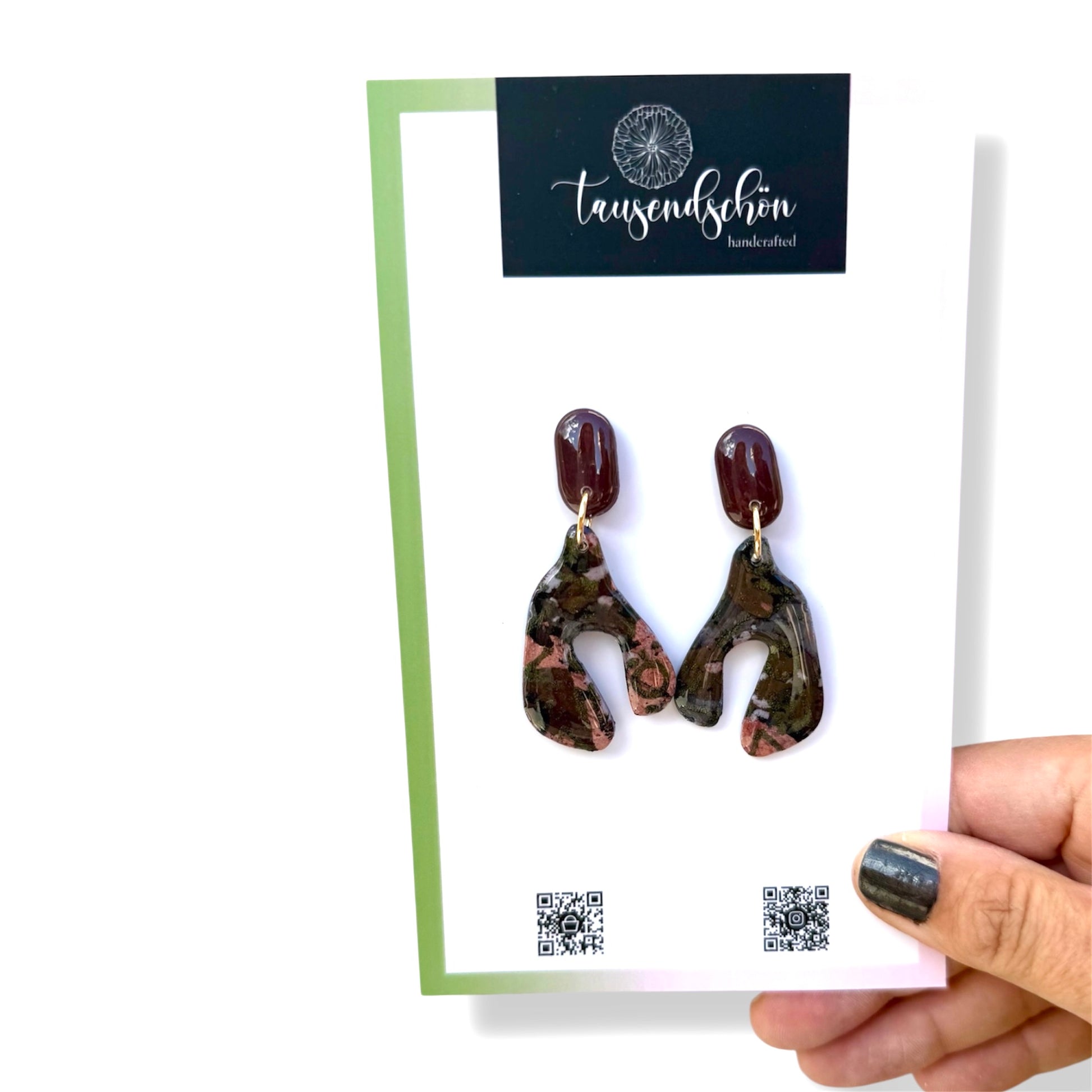 Obwohl Polymer Clay haltbar und stark ist, muss er dennoch richtig gepflegt werden, da er bei unsachgemäßer Verwendung und Lagerung leicht zerbrechen kann, besonders wenn das Design empfindlich ist. Versucht bitte keine „Haltbarkeits- oder Biegetests". Am besten bewahren Sie Ihre Edelsteine „gesund und munter“ auf, indem Sie sie an einem trockenen, kühlen Ort aufbewahren.Wenn nicht anders angegeben, verwenden wir für unsere Ohrringe ausschließlich hochwertige Verschlüsse aus Edelstahl und sind Nickelfrei.