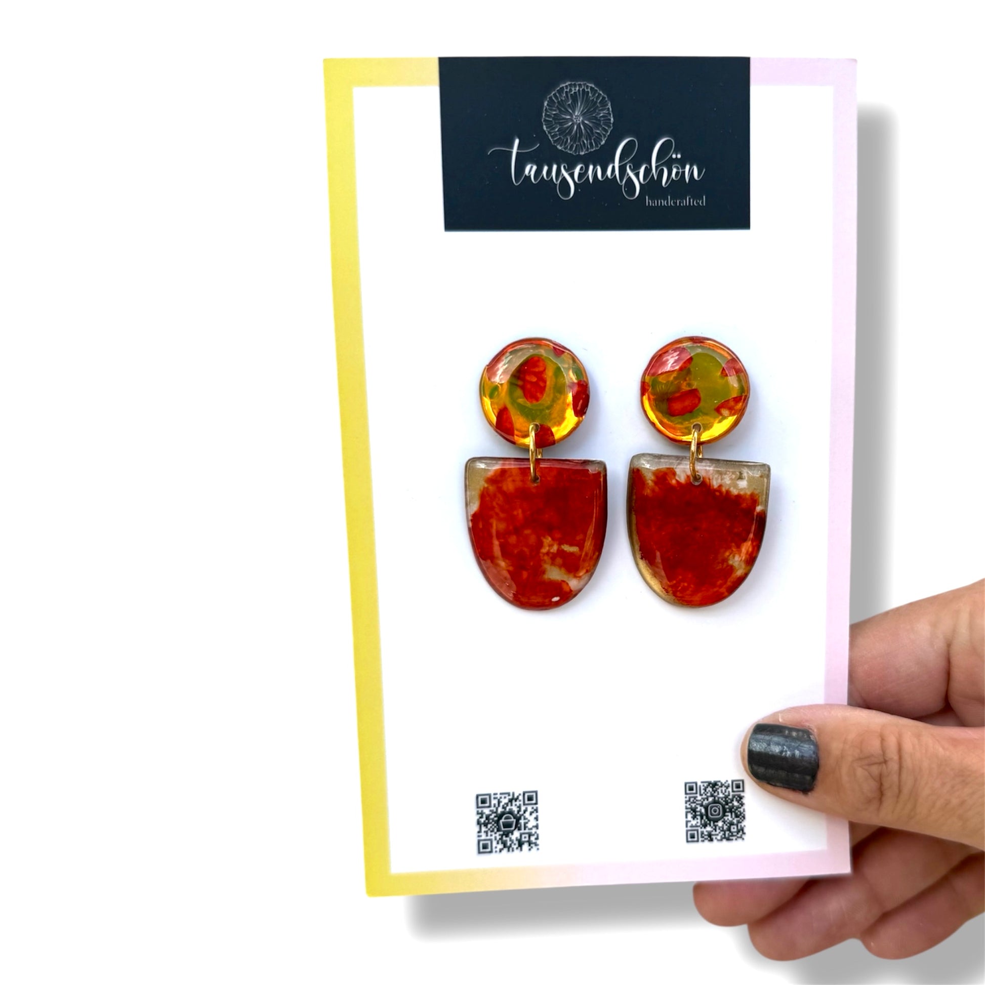 Unsere schöne Ohrringe werden aus einem ungiftigen PVC-basierten Medium namens Polymer Clay hergestellt. Wir formen es, mischen die Farben und fügen manchmal Dinge wie Folie oder Glitter hinzu, dann werden sie mit größter Sorgfalt ausgehärtet und fertiggestellt.