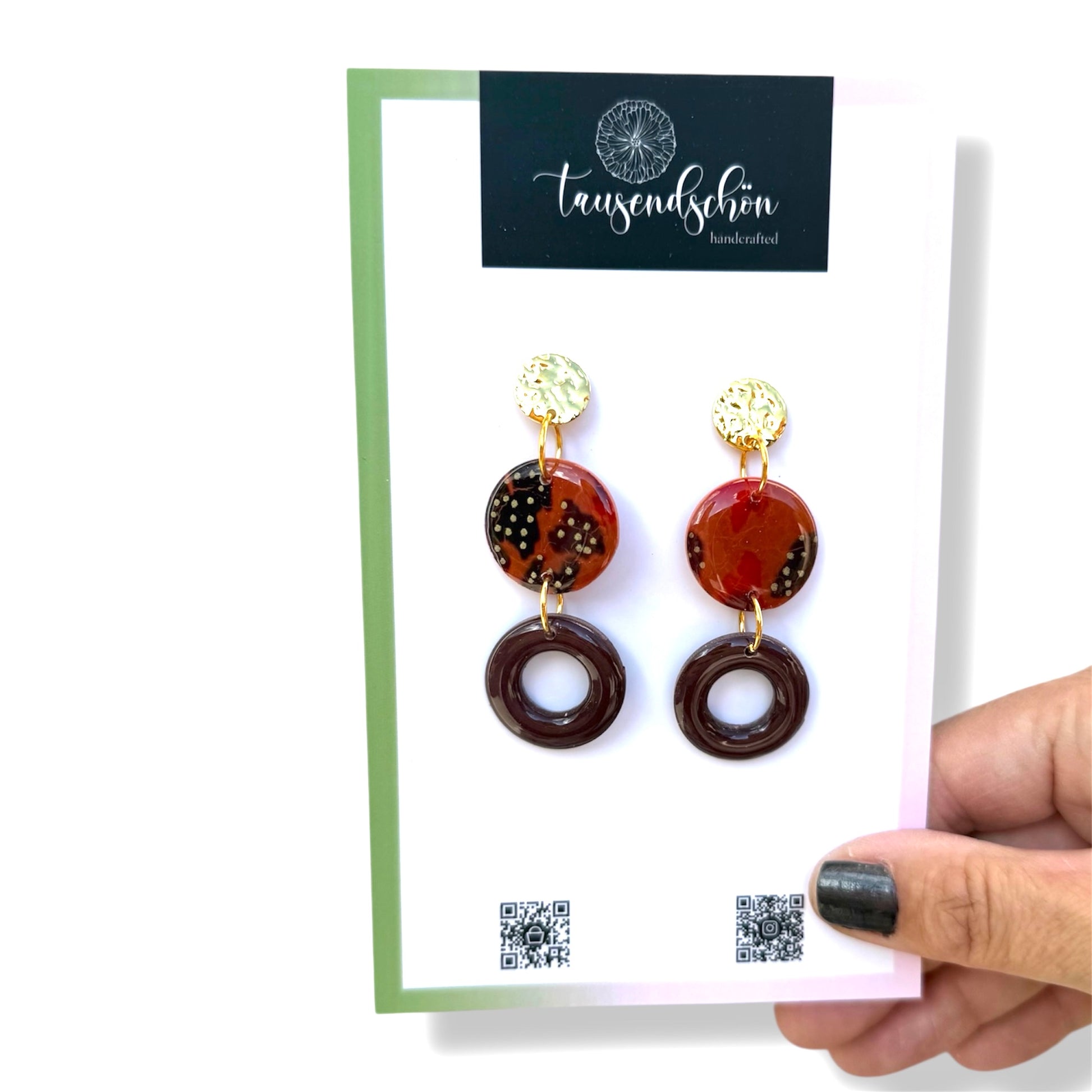 Unsere schöne Ohrringe werden aus einem ungiftigen PVC-basierten Medium namens Polymer Clay hergestellt. Wir formen es, mischen die Farben und fügen manchmal Dinge wie Folie oder Glitter hinzu, dann werden sie mit größter Sorgfalt ausgehärtet und fertiggestellt.
