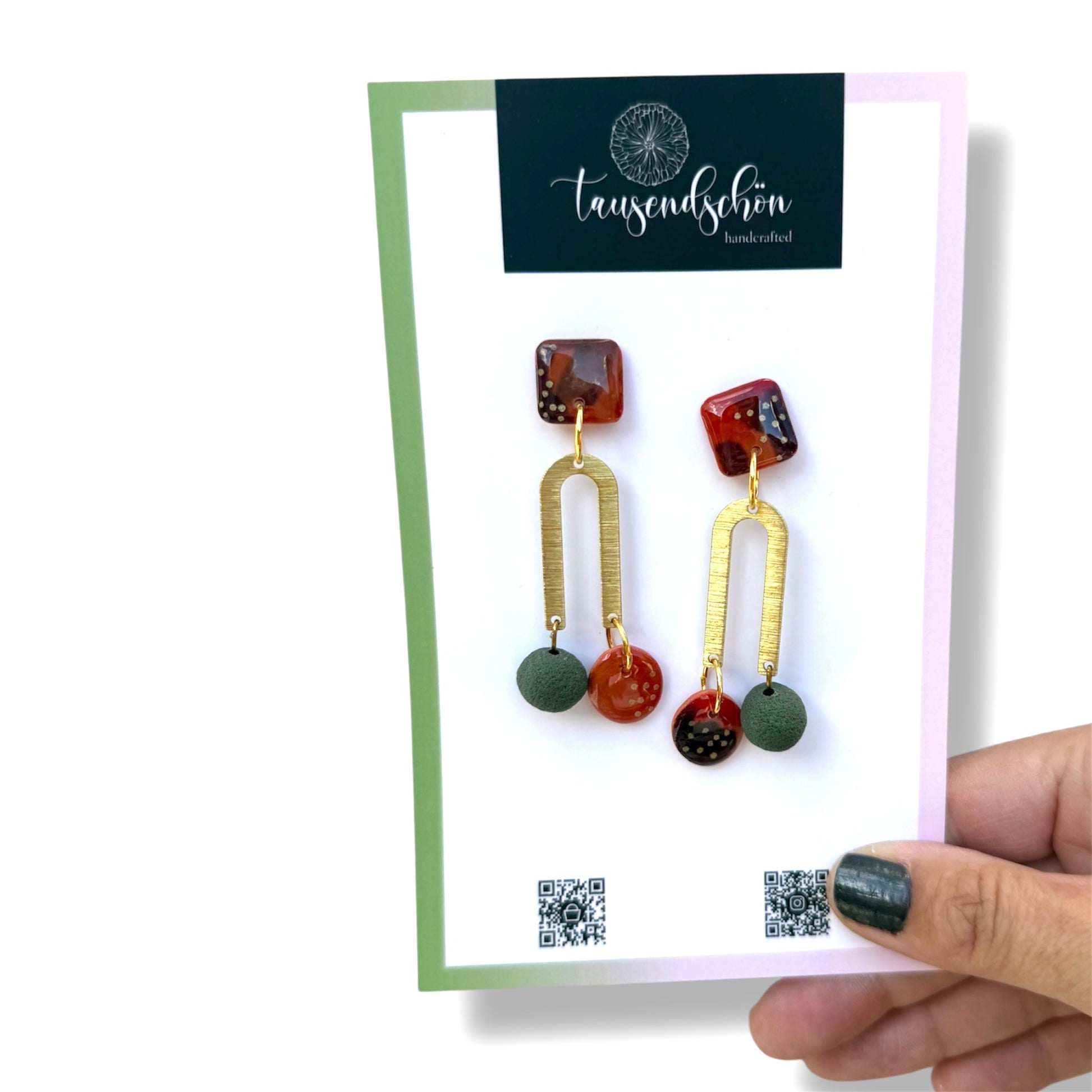 Unsere schöne Ohrringe werden aus einem ungiftigen PVC-basierten Medium namens Polymer Clay hergestellt. Wir formen es, mischen die Farben und fügen manchmal Dinge wie Folie oder Glitter hinzu, dann werden sie mit größter Sorgfalt ausgehärtet und fertiggestellt.