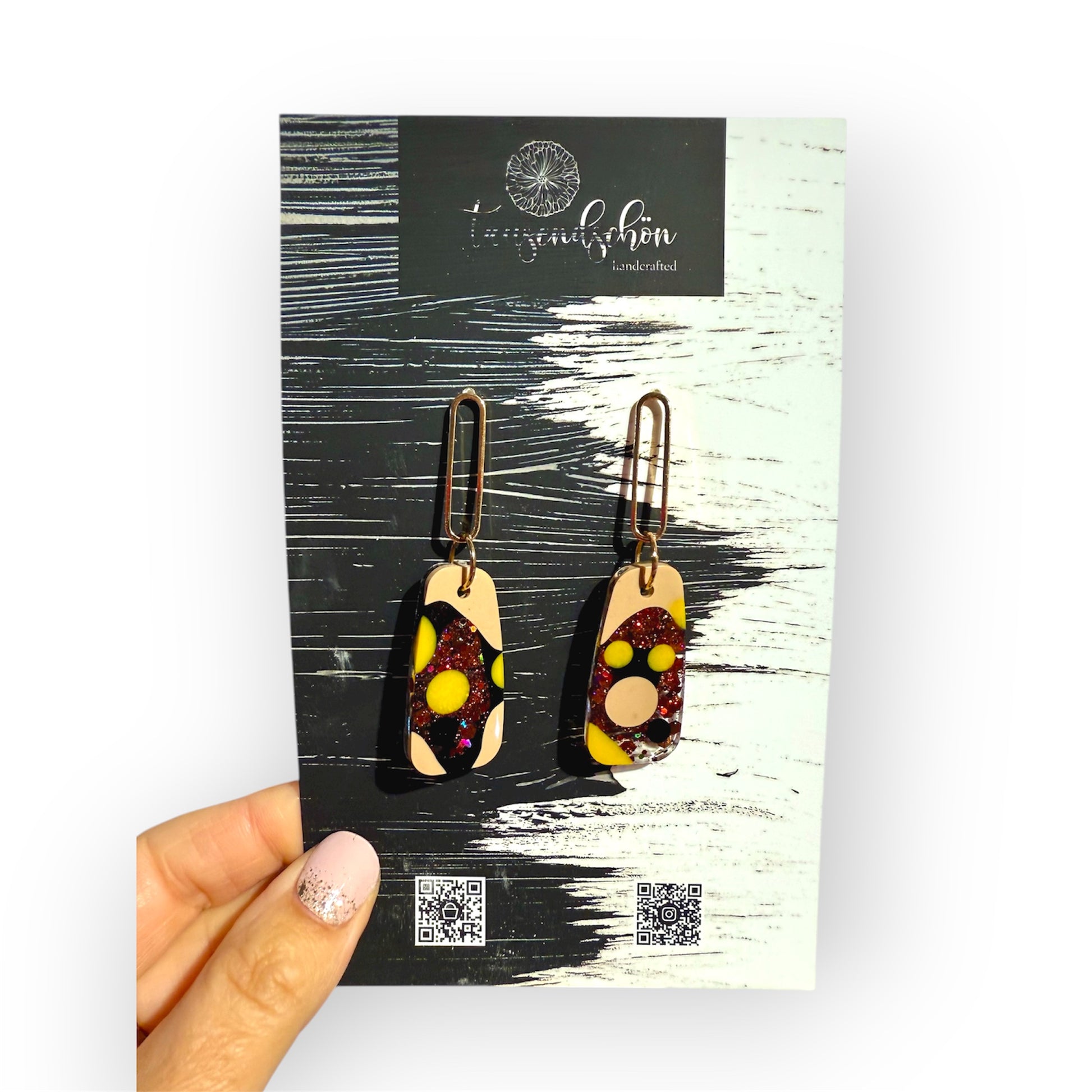 Unsere schöne Ohrringe werden aus einem ungiftigen PVC-basierten Medium namens Polymer Clay hergestellt. Wir formen es, mischen die Farben und fügen manchmal Dinge wie Folie oder Glitter hinzu, dann werden sie mit größter Sorgfalt ausgehärtet und fertiggestellt.
