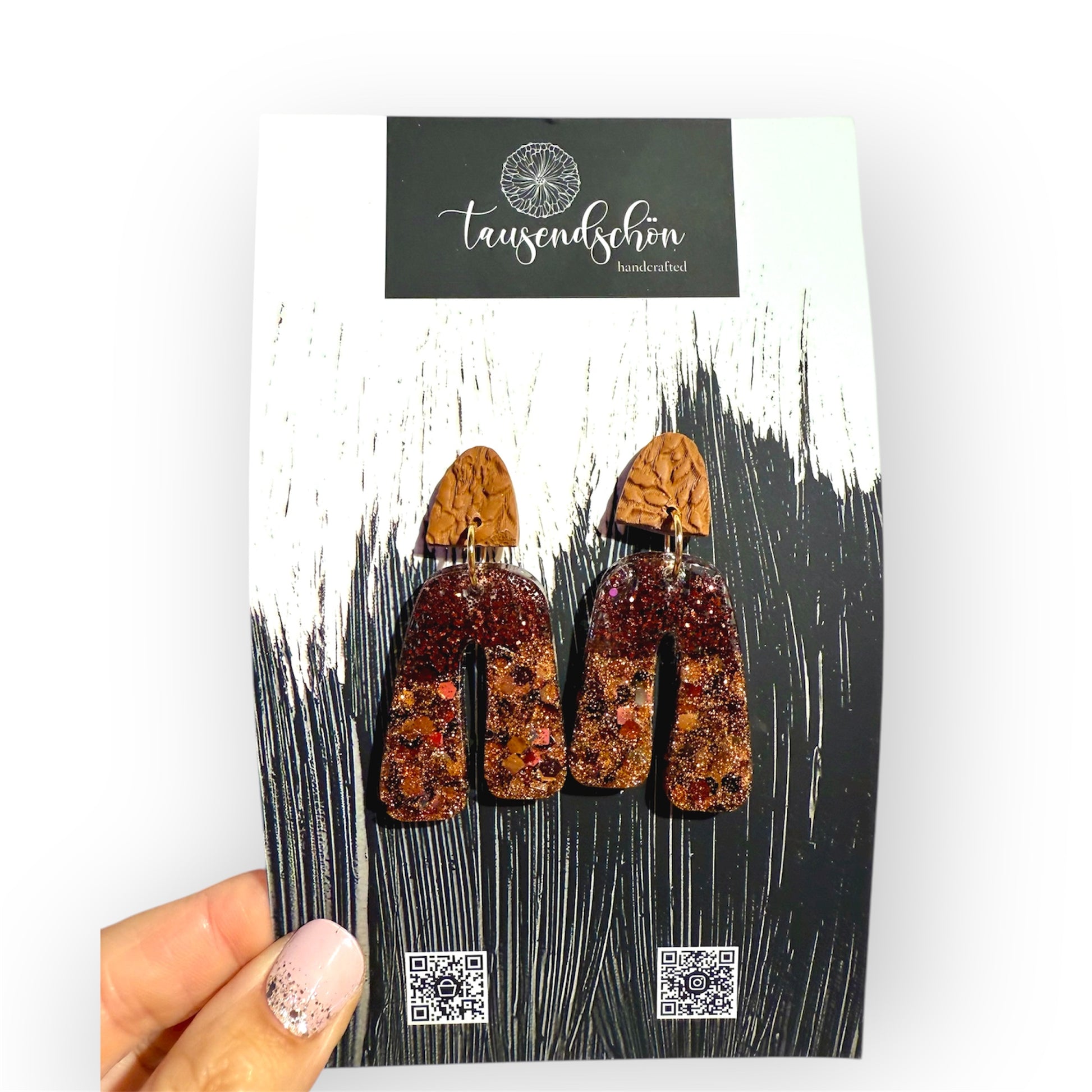Unsere schöne Ohrringe werden aus einem ungiftigen PVC-basierten Medium namens Polymer Clay hergestellt. Wir formen es, mischen die Farben und fügen manchmal Dinge wie Folie oder Glitter hinzu, dann werden sie mit größter Sorgfalt ausgehärtet und fertiggestellt.