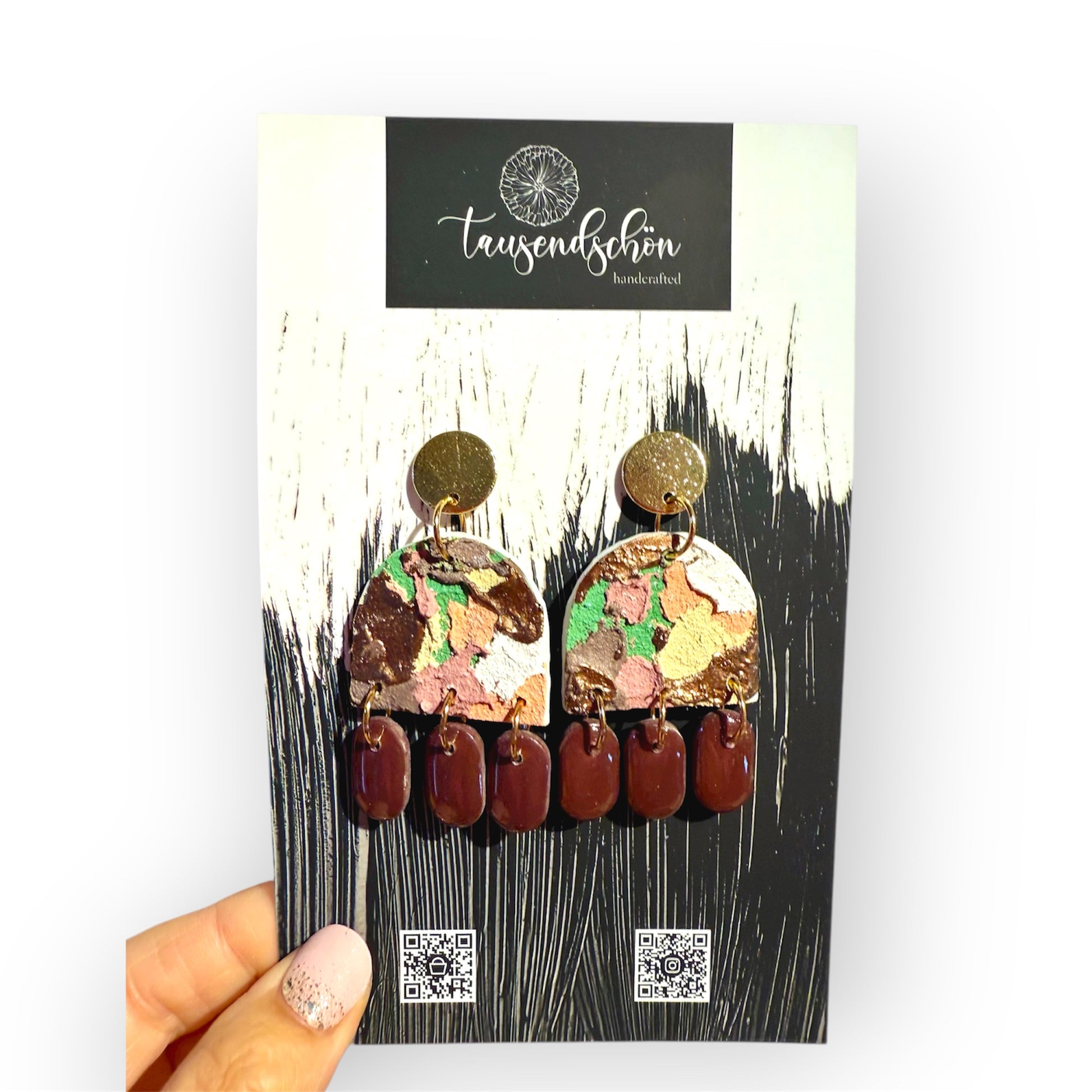 Obwohl Polymer Clay haltbar und stark ist, muss er dennoch richtig gepflegt werden, da er bei unsachgemäßer Verwendung und Lagerung leicht zerbrechen kann, besonders wenn das Design empfindlich ist. Versucht bitte keine „Haltbarkeits- oder Biegetests". Am besten bewahren Sie Ihre Edelsteine „gesund und munter“ auf, indem Sie sie an einem trockenen, kühlen Ort aufbewahren.Wenn nicht anders angegeben, verwenden wir für unsere Ohrringe ausschließlich hochwertige Verschlüsse aus Edelstahl und sind Nickelfrei.