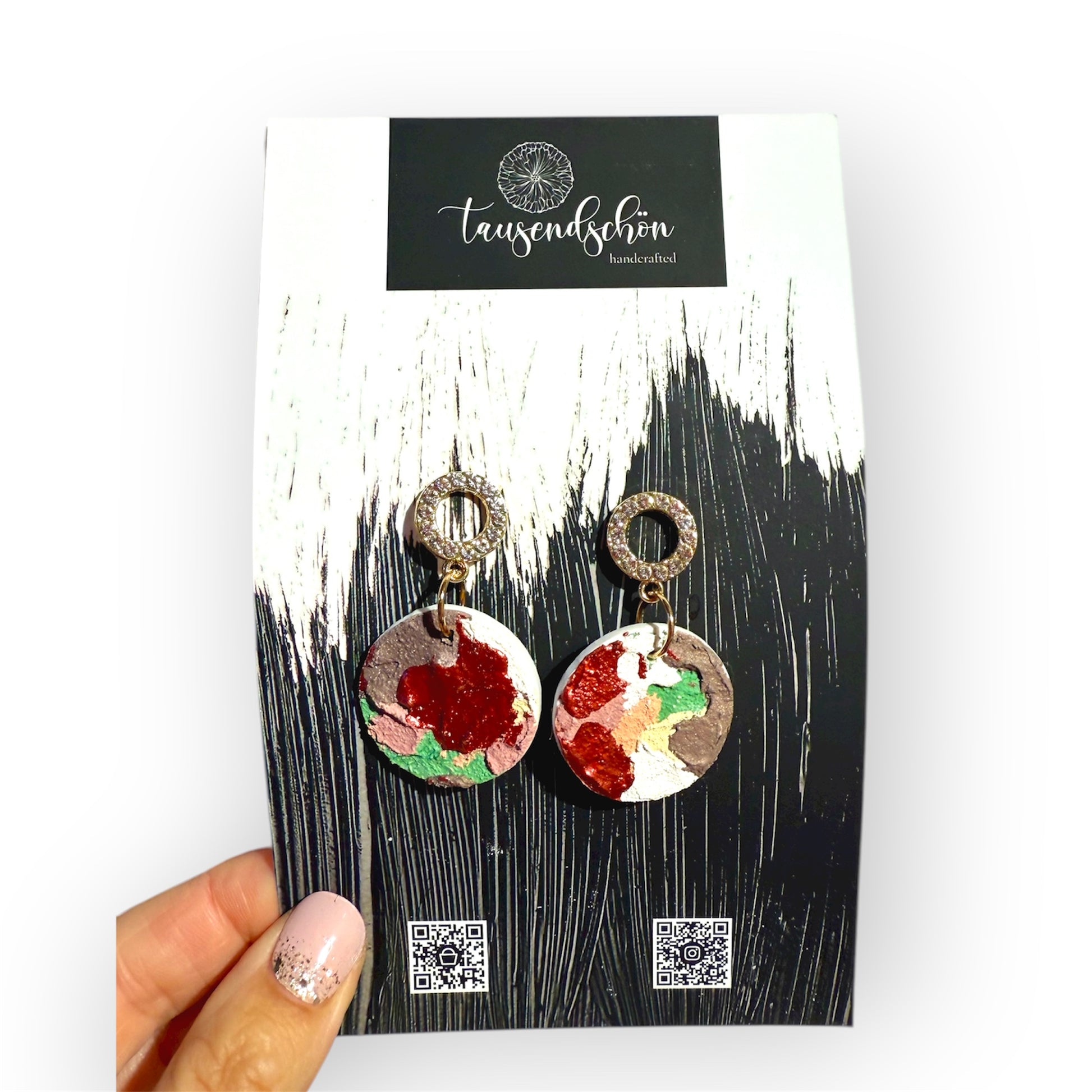 Unsere schöne Ohrringe werden aus einem ungiftigen PVC-basierten Medium namens Polymer Clay hergestellt. Wir formen es, mischen die Farben und fügen manchmal Dinge wie Folie oder Glitter hinzu, dann werden sie mit größter Sorgfalt ausgehärtet und fertiggestellt.