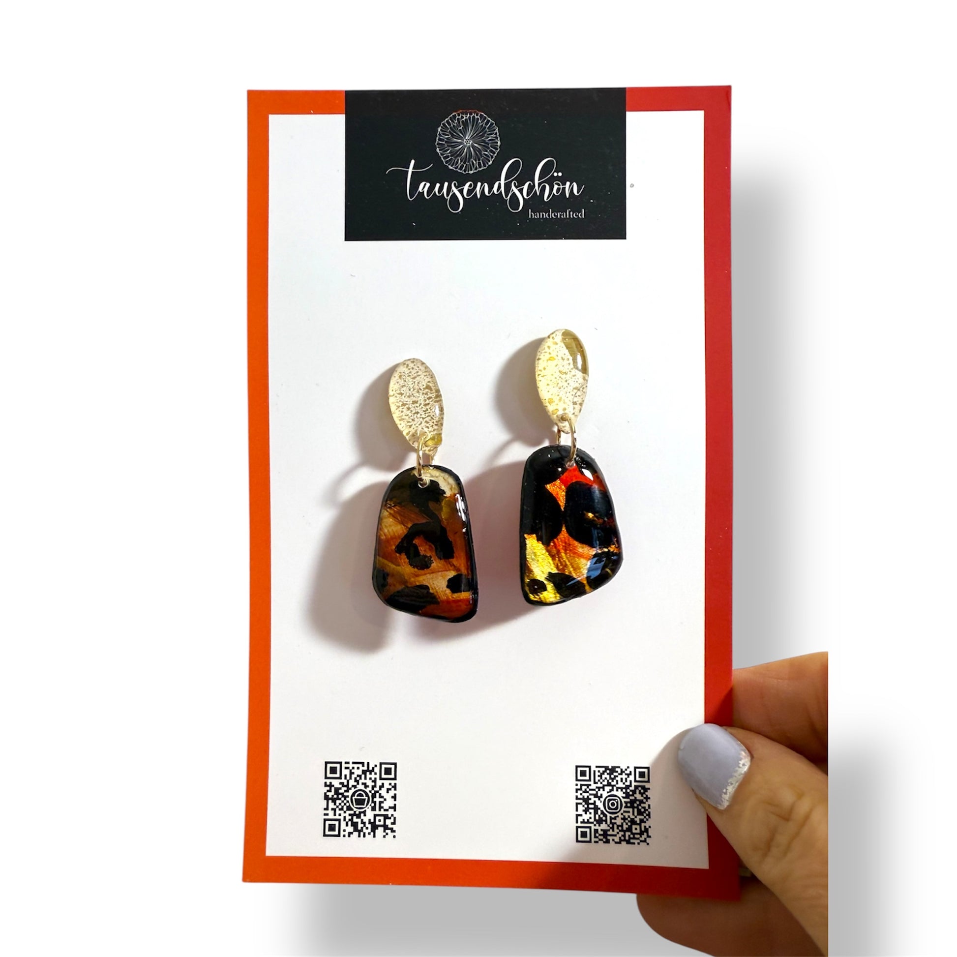 Unsere schöne Ohrringe werden aus einem ungiftigen PVC-basierten Medium namens Polymer Clay hergestellt. Wir formen es, mischen die Farben und fügen manchmal Dinge wie Folie oder Glitter hinzu, dann werden sie mit größter Sorgfalt ausgehärtet und fertiggestellt.