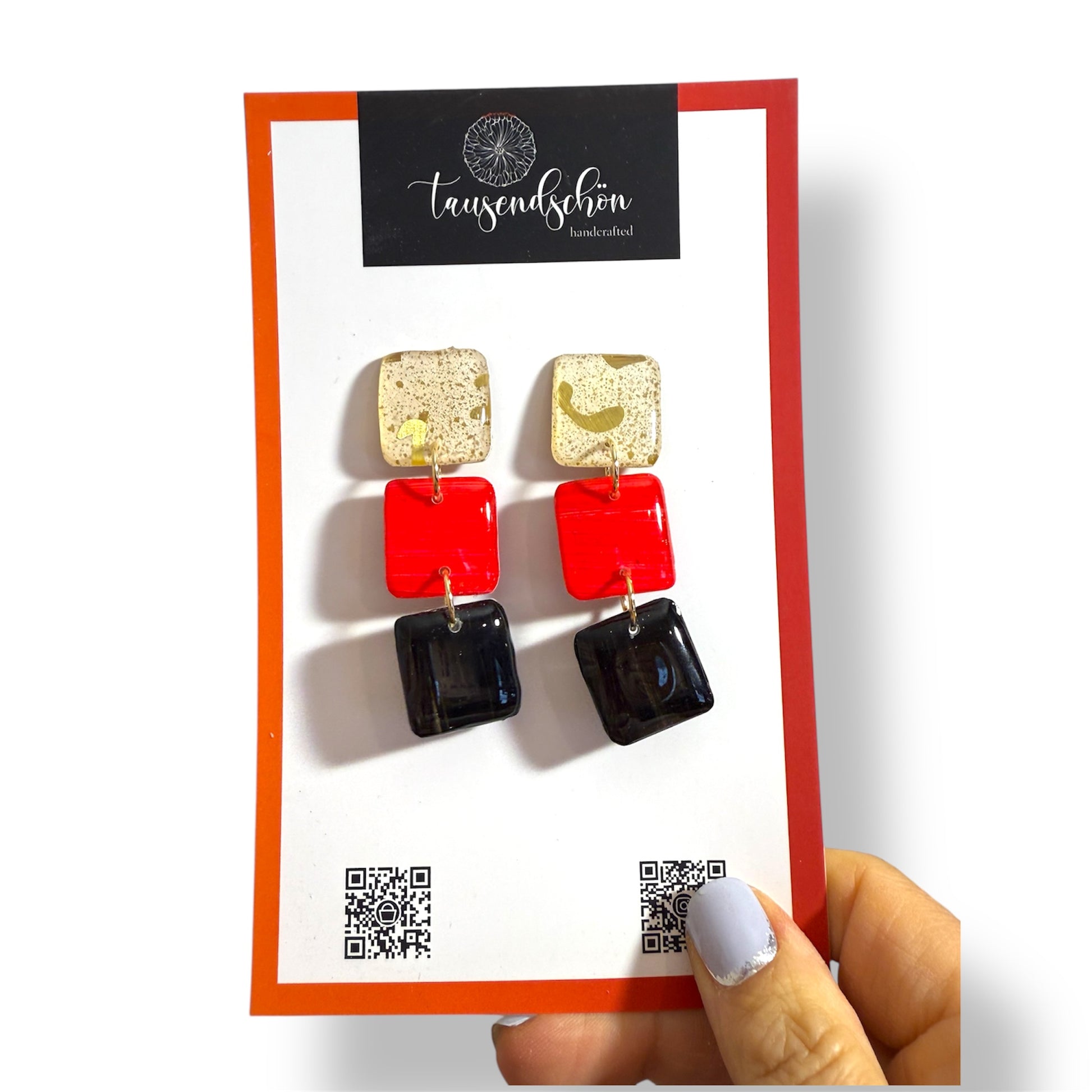 Unsere schöne Ohrringe werden aus einem ungiftigen PVC-basierten Medium namens Polymer Clay hergestellt. Wir formen es, mischen die Farben und fügen manchmal Dinge wie Folie oder Glitter hinzu, dann werden sie mit größter Sorgfalt ausgehärtet und fertiggestellt.
