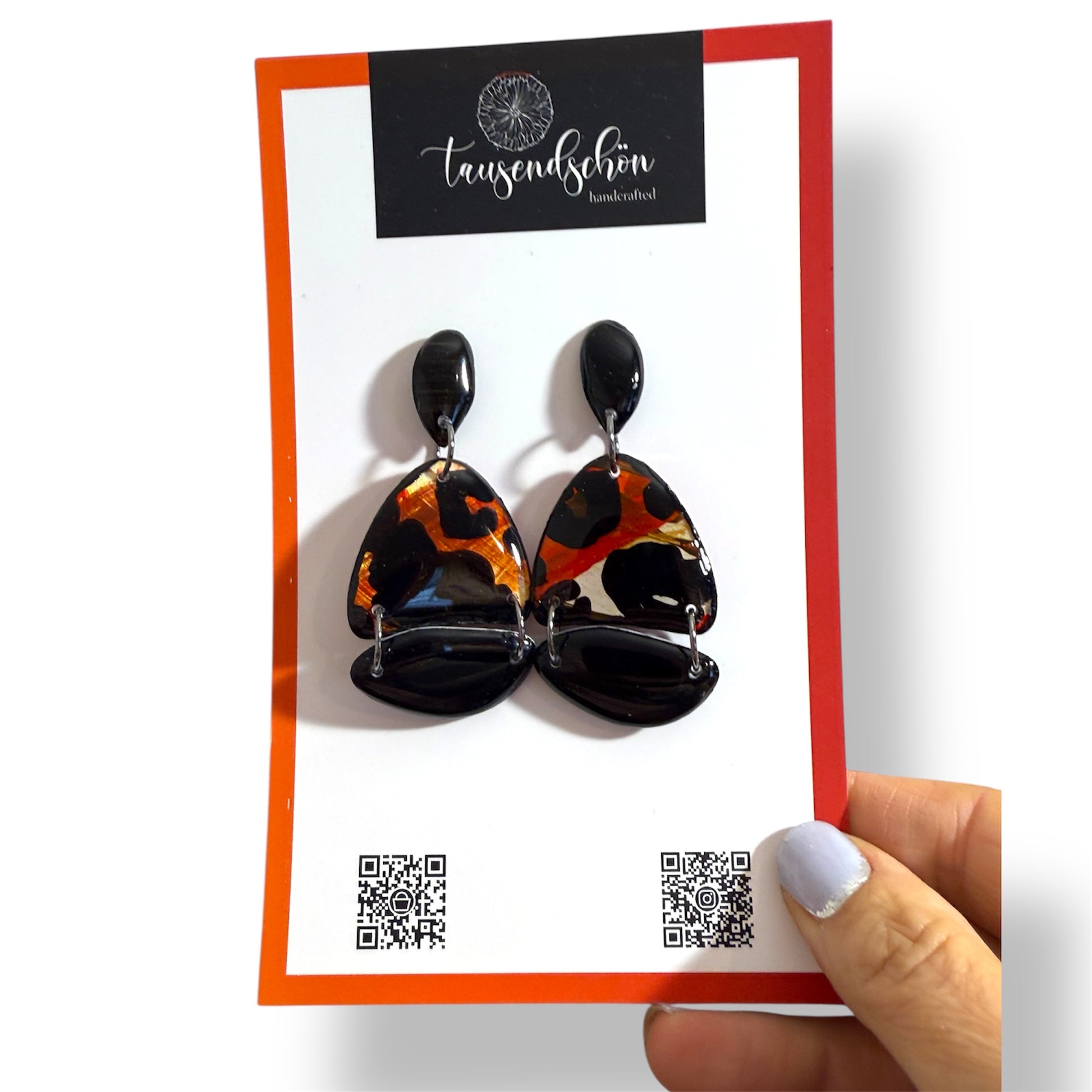 Unsere schöne Ohrringe werden aus einem ungiftigen PVC-basierten Medium namens Polymer Clay hergestellt. Wir formen es, mischen die Farben und fügen manchmal Dinge wie Folie oder Glitter hinzu, dann werden sie mit größter Sorgfalt ausgehärtet und fertiggestellt.
